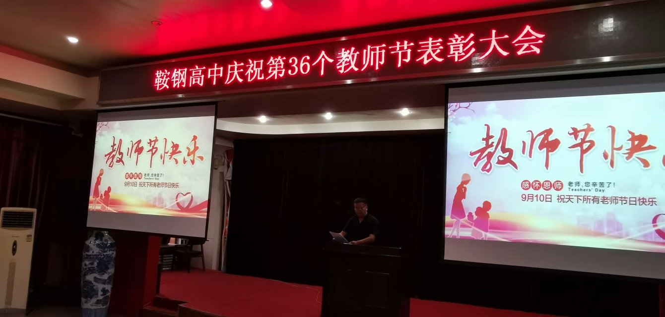 教师节表彰大会在我们都是追梦人的鞍钢高中宣传短片中拉开了序幕。本次表彰大会共有五项内容组成。一是学校党委书记王守安同志代表学校公布表奖决定。二是学校领导为我校2019—2020学年度获得优秀教师、优秀班主任、优秀教研组长、优秀备课组长、优秀教育工作者和辛勤耕耘奖的先进个人和教案评选的优秀集体、个人及学习强国满分竞赛优胜者颁奖。三是省优秀教师孙晓楠同志代表教师发言。四是优秀备课组长代表李永生同志代表教师宣读倡议书。五是姜校长讲话。她向全校教职工致以节日的问候,向受表彰的集体和个人表示祝贺,对在自己的岗位上辛勤工作、无私奉献的班主任们的付出给予了高度肯定和赞扬。并对全体教职工提出了新的希望。她希望,我们成为有理想信念、有道德情操、有扎实知识、有仁爱之心的四有好老师。她希望,每个钢高人都树立校兴我荣、校衰我耻,我与钢高共发展的理念。她希望,全体钢高人勠力同心、再接再厉、再创辉煌。